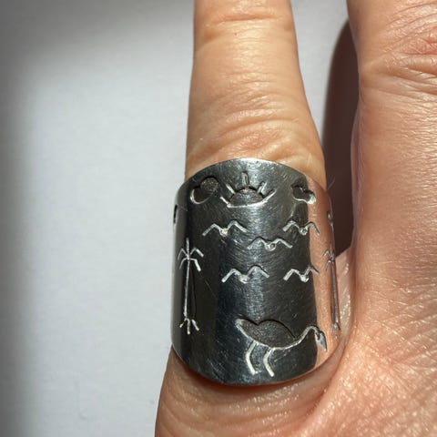 Kjempefin massiv sølvring med mønster. Stemplet 925. Ringen måler 1,9 cm.