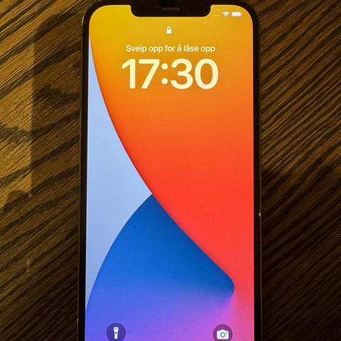 Apple iPhone 12 Pro Max smarttelefon med 128 GB lagringskapasitet i blå farge. Modellen har stor skjerm og flere kameraer på baksiden. Egnet for bruk til daglige mobiloppgaver, foto, video og apper, med god plass til lagring av filer, bilder og applikasjoner.