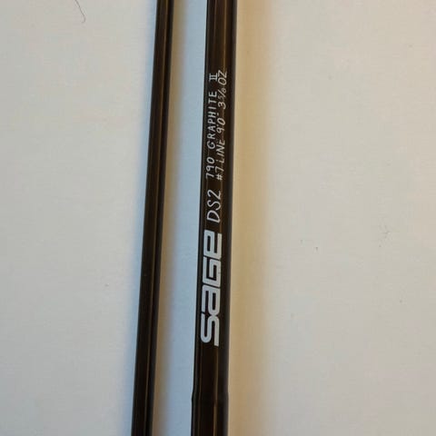 Stangen er 9 fot 6 tommer lang og er beregnet for snøreklasse 6. Bygget på Graphite III-klinge med brunsvart finish og korkhåndtak. To-delt konstruksjon med snellefeste i metall. Leveres med originalt Sage-stangrør i hardplast.