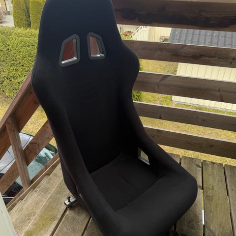 Momo daytona bøttestol i størrelse XL med braketter og stolramme som passer BMW E36/E46. Ubrukt / kun prøvemontert. Fia godkjent. (må hentes)