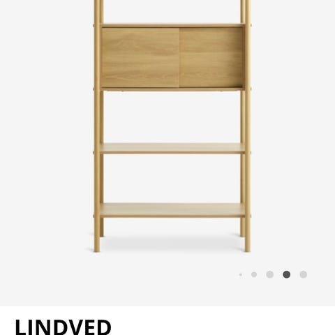 Ubrukt og ny i eske lindved reol med 6 hyller mørk eikefarget