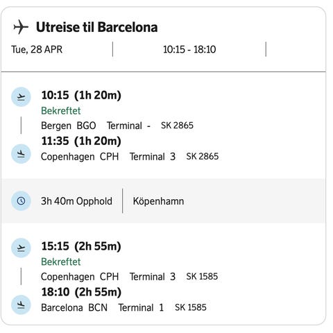 Inkl insjekka bagasje, håndbagasje og spesialbagasje sykkel