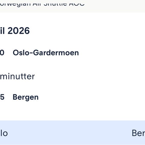 Bergen - Oslo. 700 kr