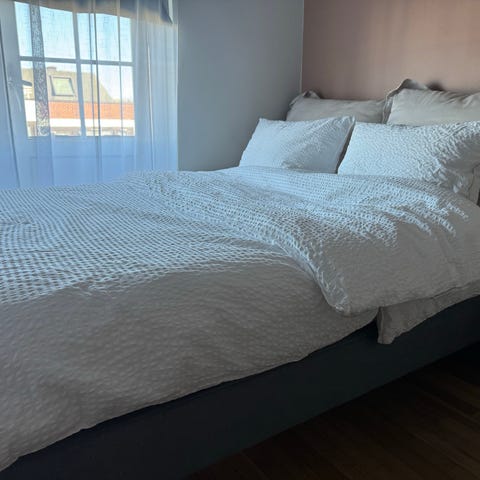 Kjøpt brukt for 5 mnd siden. Lite brukt etter dette. Veldig god seng! Følger med overmadrass. Selges mot henting 1 etasje majorstuen