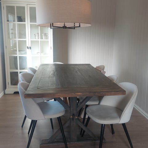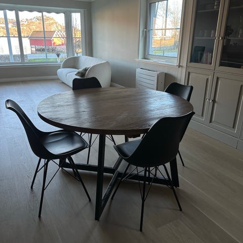 Håndlaget rundt stuebord i eik lages på bestilling. Fra ø120 til ø150.