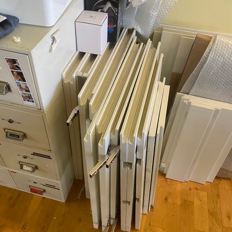 Selger 3 stk overskap fra tidligere vaskerom. Kan brukes som veggskap på bad, vaskerom, bod, garasje eller kjøkken. Hvert skap er 80 cm bredt og 90 cm høyt. Det følger med to dører til hvert skap og det er totalt 7 hyller med.