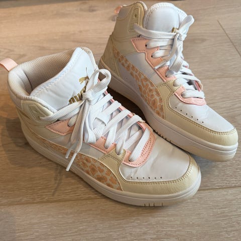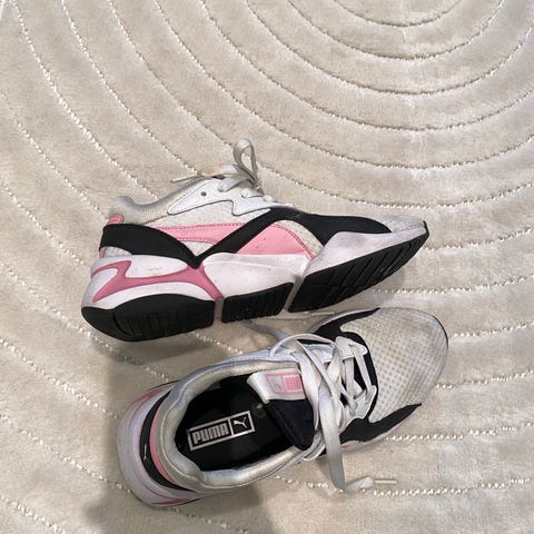 Puma sneakers joggesko i størrelse 38 selges! Skoene er hvite med lyserosa detaljer. Skoene kan brukes både til hverdag og fritid. Veldig kule sko, men har dessverre for mange sko, og må kvitte meg med noen❣️