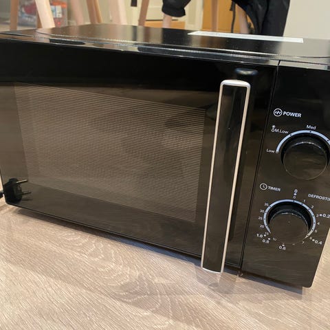 Gorenje mikrobølgeovn i stål. Frittstående modell med mekaniske dreieknapper på høyre side for innstilling av effekt og tid. Innvendig rom med roterende glassplate. Egnet til oppvarming og tining av mat i hverdagen.