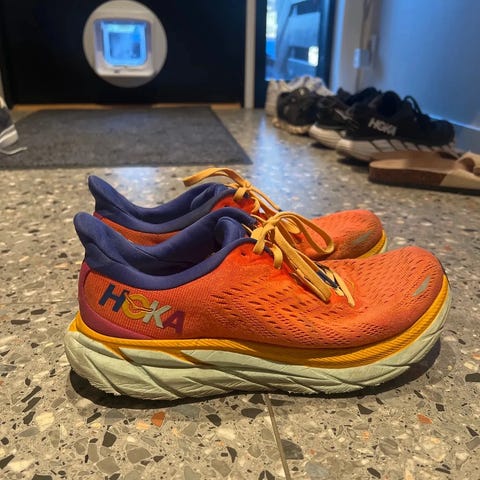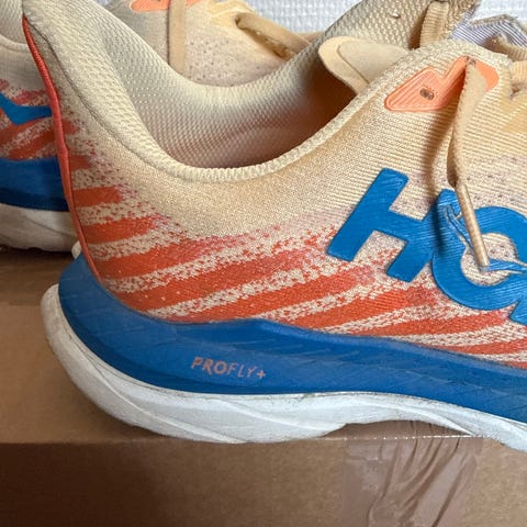 Selger et par HOKA Tecton x i størrelse 44. Dette er en lett og responsiv løpesko med karbonplate, perfekt til konkurranse og raske økter.