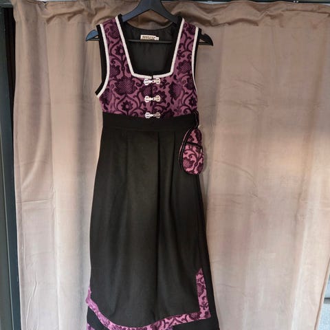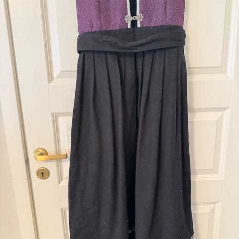 Pent brukt festdrakt med forkle og veske som kan tas av.