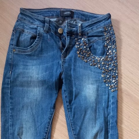 Mos Mosh jeans for dame i blå denim. Buksen har størrelse 25. stretchy pg mykt materiale