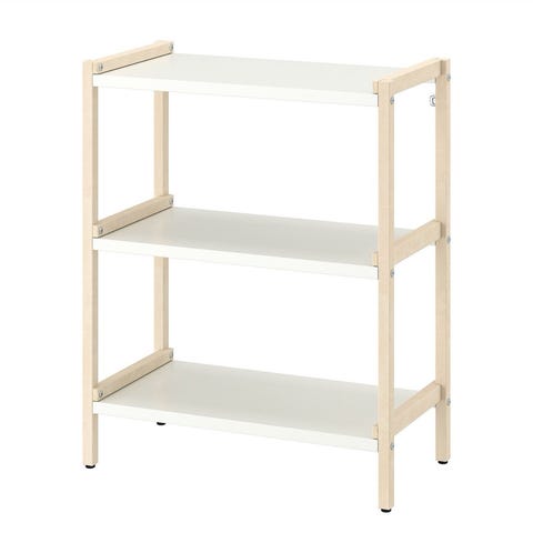 Har også 4 stk av denne som er større: https://www.ikea.com/no/no/p/ekenabben-apen-hylle-asp-hvit-80487813/ 650kr/pr eller 2000kr for alle 4.