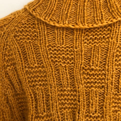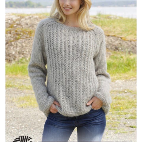 Strikket med dobbelt garn Soft merino (100% merinoull) og Drops Melody (71% alpakka, 25% ull og 4% polyamid)