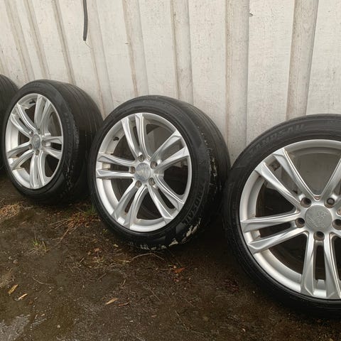 Felger med dekk 255/55r19 2st Nexen og 2st continetaldekk. Dekk er fra -17 og -16. mye mønster igjen, lagret mørkt og kaldt i flere år. Er brukt på W164 Mb Ml tidligere.
