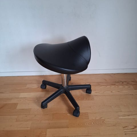 Sadelstol / sadelktakk som kan heves og senkes. Fungerer som den skal, men tøyet under har begynt å løsne. Dette er uten betydning for funksjon og bruk. Kan hentes i Erfjord eller på Tau, eller møtes i Stavanger.