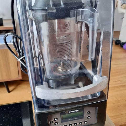 Profesjonell blender konstruert for bruk i kafé, restaurant eller annet serveringsmiljø. Maskinen har integrert støykasse rundt kannen for å redusere lydnivå under bruk. Kannen er gjennomsiktig med tydelige målemarkeringer og lokk med åpning for påfylling. Betjeningspanelet i front har display og knapper for ulike programmer og hastigheter.