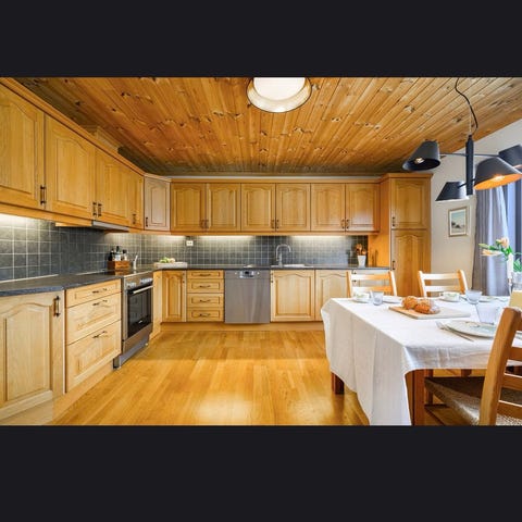 Gis bort mot henting da vi skal bytte kjøkken. Oppvaskmaskim (Miele) og koketopp (siemens) medfølger. Kjøkkeninnredning i hjørneløsning i heltre eik. Innredningen består av over- og underskap, hjørneskap og skuffer i samme serie. Frontene er i eik med profilert design og integrerte håndtak. Benkeplaten er i mørk utførelse, og det er plass til integrerte hvitevarer som komfyrtopp, stekeovn og oppvaskmaskin. Løsningen passer for montering langs to vegger i vinkel og gir god skap- og benkeplass i kjøkkenet.