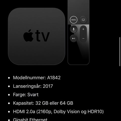 Apple TV med fjernkontroll og avkortet kabel selges. Den lyser når jeg kobler den til, så den skal fungere.