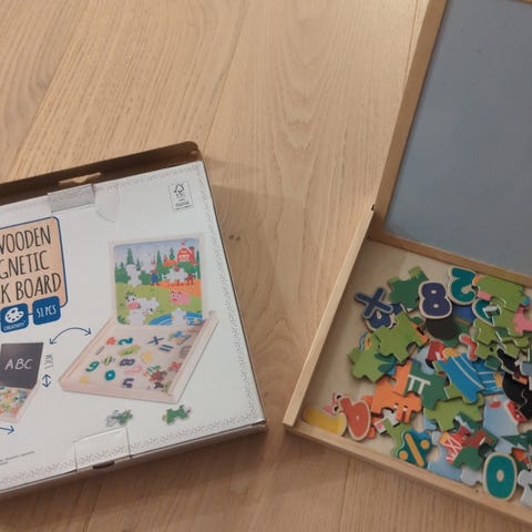 IKEA bordplate i metall som kan brukes som magnettavle for tegninger, magneter og små leker på barnerom