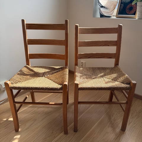 Fin i treverket og fletting i setet for alderen. Normal og sjarmerende slitsje. Faste i leddene.
