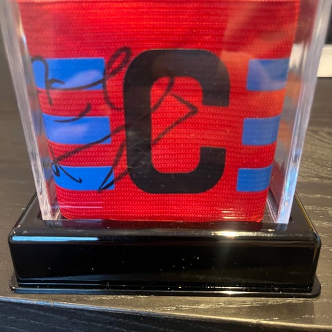 Selger et unikt og stilrent samleobjekt – signert kapteinsbind av Andres Iniesta, en av fotballhistoriens største midtbanespillere og Barcelona-legende.