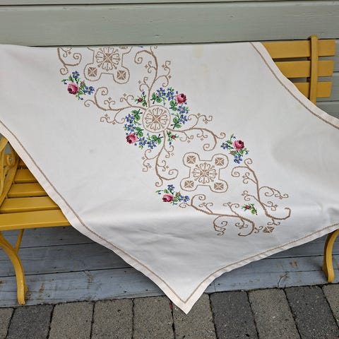 Duk med broderte blomster. Str 80 x 80 cm. NY