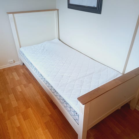 hvit uttrekksbar seng.