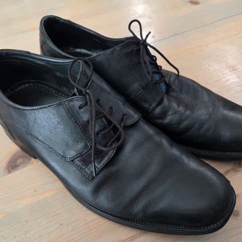 brukte svarte skinnsko med snøring. De har noen bruksmerker, men er fortsatt fine, men selges derfor billig.
