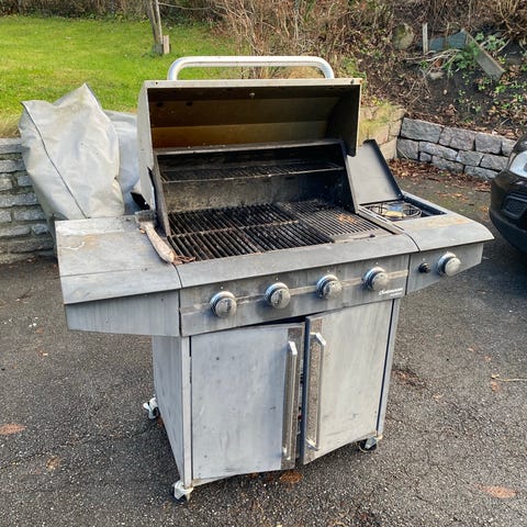 Godt brukt, men fungerer i mange år til og fører også med trekk/presenning. Gassflaske følger ikke med.
