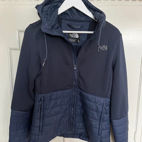 The North Face jakke for dame i størrelse M. Jakken er laget i polyester og har et flerfarget design med ulike fargetoner. Modellen har hette og hel glidelås i front. Egnet som lett ytterjakke til hverdagsbruk og ulike utendørsaktiviteter i mildt vær.