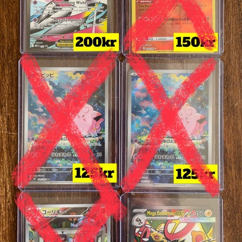 Permsalg med hits fra flere pokemon serier og noen stemplet promo kort. Følger priser fra pricecharting bla. Minstepris for å sende kortene i posten er 100,- kjøp. Send mld om du ønsker noen kort eller lurer på noe😊