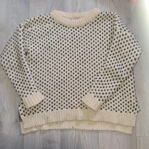 Deilig ullgenser fra Telemark Handverksentral. Brukt et par ganger. Str. M/L er romslig. Kan ordne frakt med tillegg av kr. 100,-