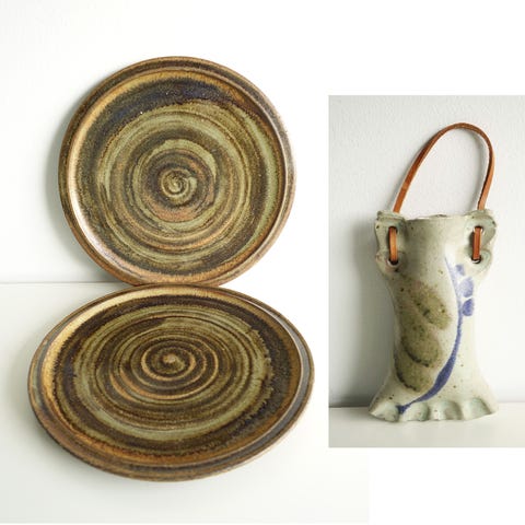 Vallauris keramikkkanne brun og gul (fast lava)