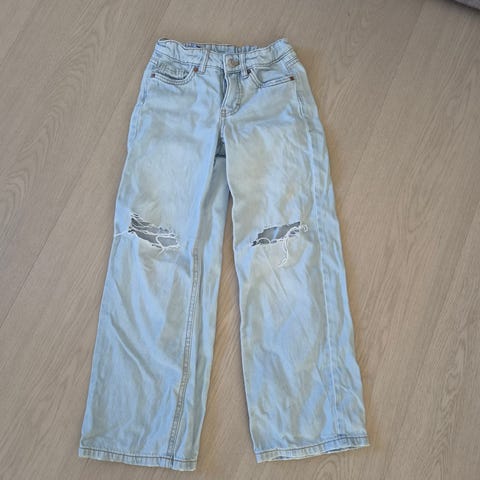 Cubus denimbukse for jente i størrelse 152. Buksen er laget i denimstoff og har en flerfarget utforming med lys bukseben og mørkere denim i livet. Den har klassisk femlommers design og beltehemper i linningen. (+ gratis rose bluse)