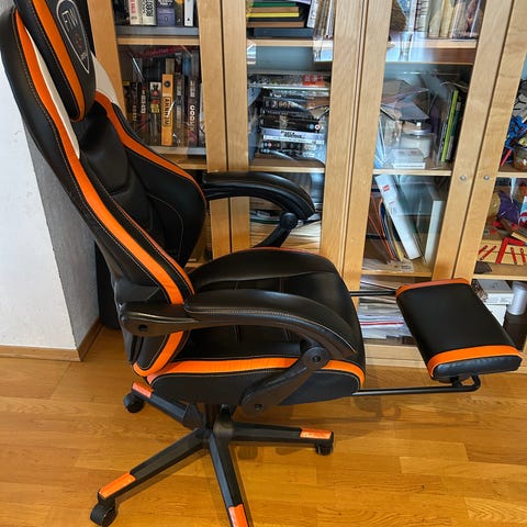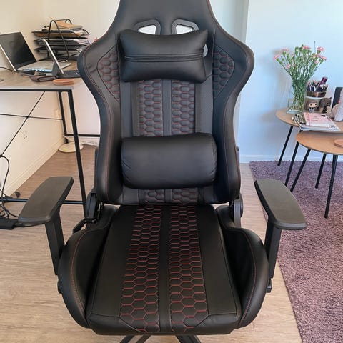 Godt brukt ergonomisk justerbar gamingstol gis bort da vi har kjøpt ny kontorstol og håper noen andre kan få glede av stolen.