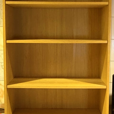 Det selges to hyller, en for 750, begge for 1250. Demontering er ikke inkludert i prisen men kan forhandles. Hyllene står i andre etasje.