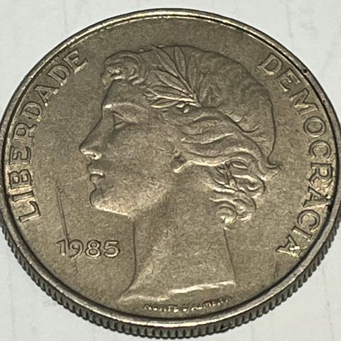 Portugal 5 escudos mynt fra 1961. Forsiden viser nasjonalt våpenskjold med pålydende verdi 5$00, mens baksiden har motiv av en kvinneskikkelse og teksten "Republica Portuguesa" samt årstallet 1967. Egner seg som samleobjekt for mynter fra Portugal og historiske valutaer.