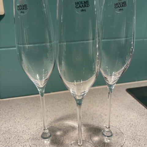 2 champagneglass fra Holmegaard selges samlet for 200kr. Skal kun være brukt én gang. Må hentes på Kaldnes på Nøtterøy.