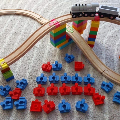 Adapter mellom tretogbaner Brio/Ikea og Lego Duplo.