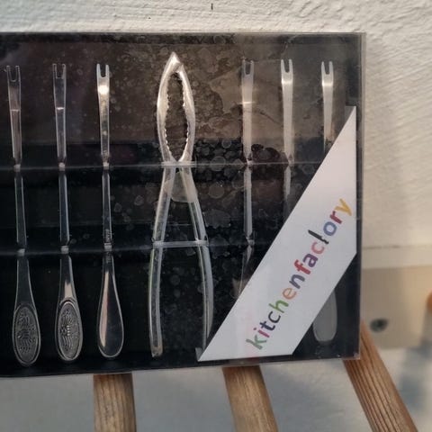 skalldyrsett med 4 gafler og en knekker