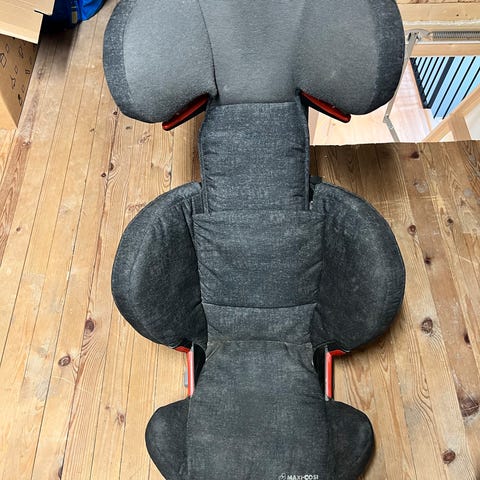 Maxi-Cosi RodiFix AirProtect barnesete i størrelse 36. Setet er et beltestol-barnesete med høy rygg og justerbar hodestøtte. Fargekombinasjon i hovedsak svart med mørkegrå detaljer.