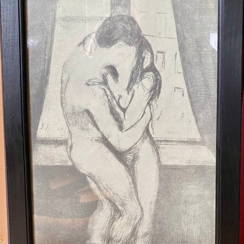 Innrammet etsning med passepartout, 53x43cm inkl ramme.