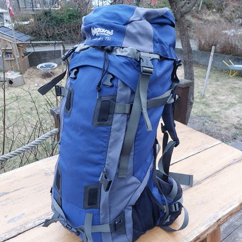 Mangler den ene originale bryststroppen. Kjøpt ny komplett brystreim fra Bergans.