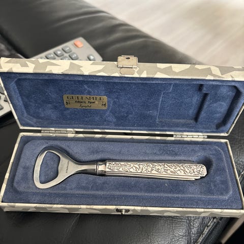 Emballasjen er foret med mørkeblå fløyel og har logo for Lillehammer '94 på lokket.