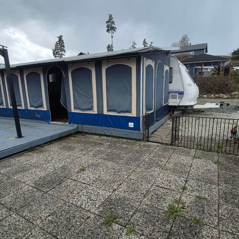 Godt vedlikeholdt og pent helårstelt 5.60 x 3.00. 10 år gammelt, står på campingplass i Halden.