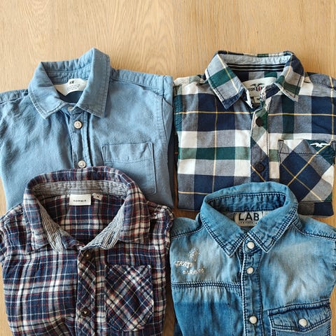 GANT skjorte for gutt i størrelse 134-140. Skjortene selges samlet. Den rutete skjorta har to bitte små hull bak, som er sydd. Det ser ut som det vært merkelapper der.