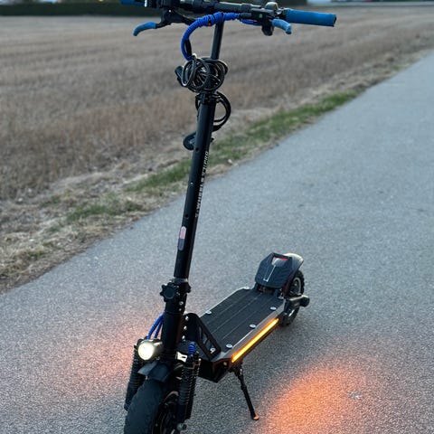 Denne er det ikke noe problem med må bare fikse bremsen men det gjøres før salg den funker med lysa på sidene forran å bak å tuten virker som den skal har satt på nye grips å ledningbesyttere å nye skruer bare å skrive vis du vil ha mer info eller er noe som helt:)