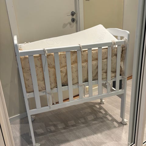 Skrudd noen skruer høyere oppe slik at sengen passer en høy seng.
