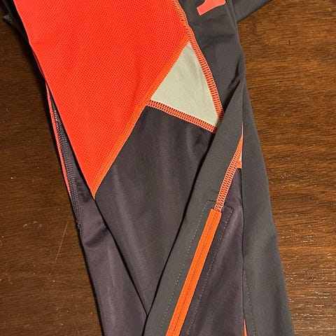 🌏Buksen er grå med innslag av mørkere felt bak på leggene.