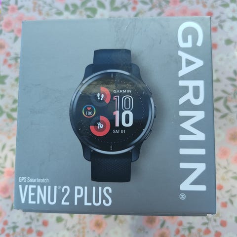 Garmin Venu 2 blå silikonrem, blank urkasse